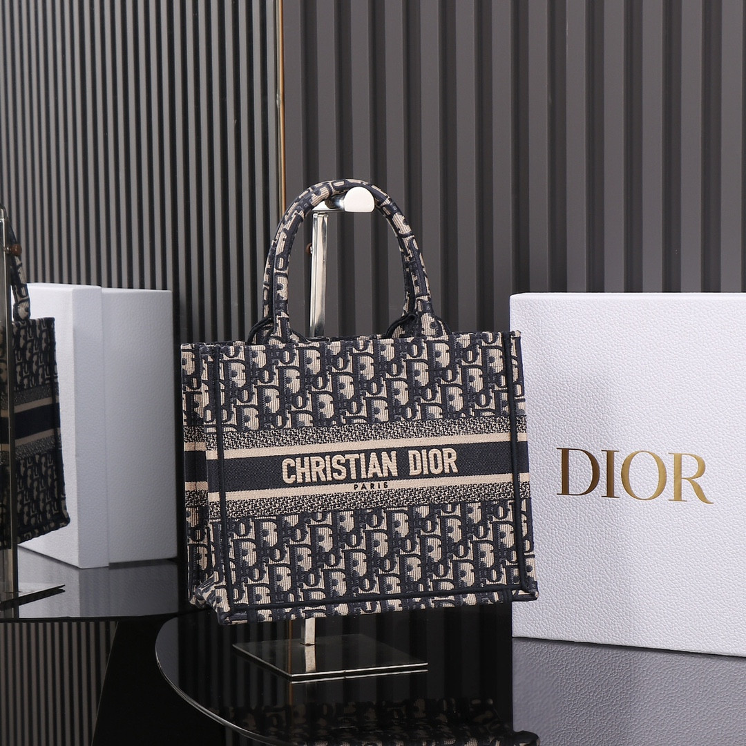 small D*or book tote blue D*or oblique embroidery and calfskin 10.5 x 8.5 x 5.5 inches