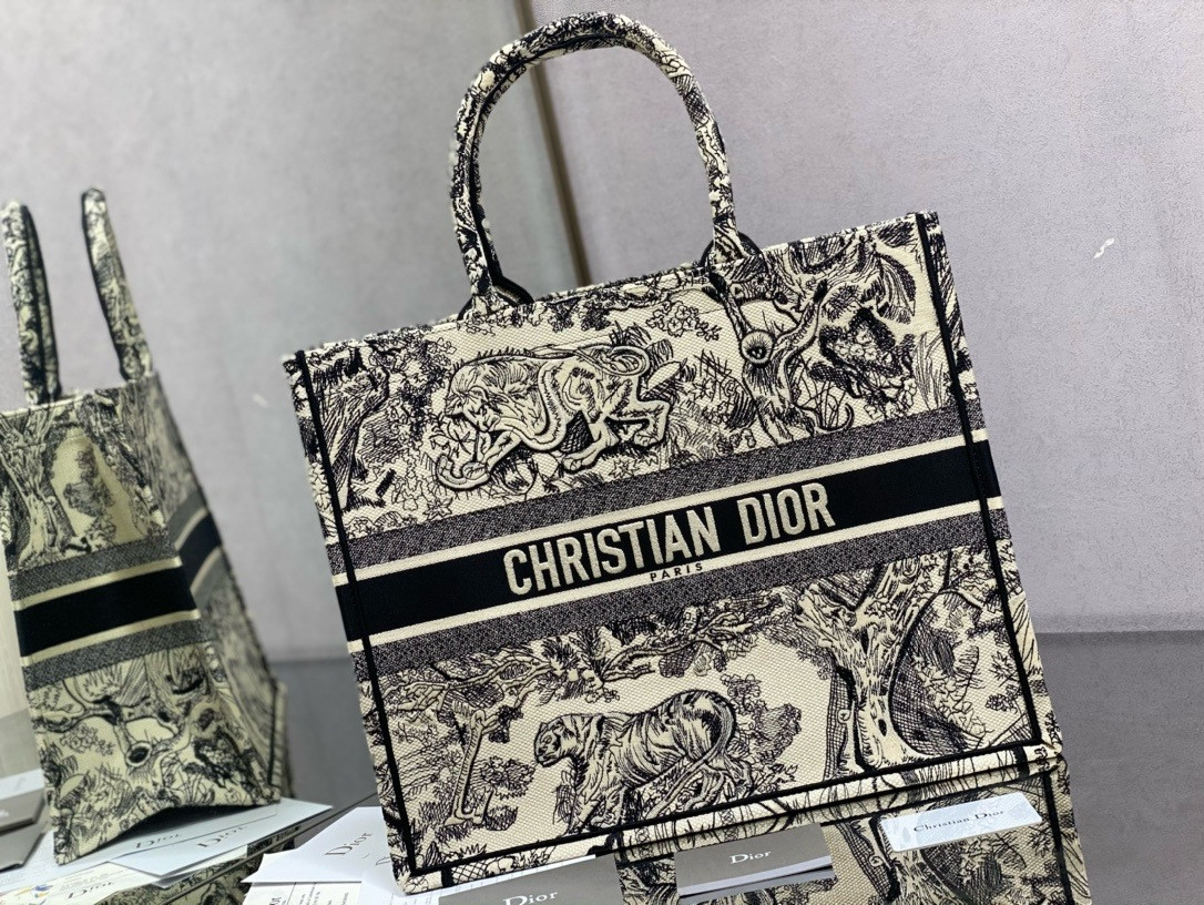 large D*or book tote ecru and gray D*or oblique embroidery 16.5 x 14 x 7.5 inches