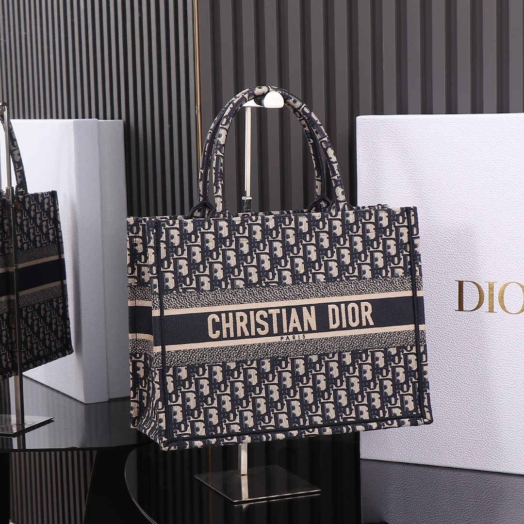 medium D*or book tote blue D*or oblique embroidery and calfskin 14.5 x 11 x 7 inches
