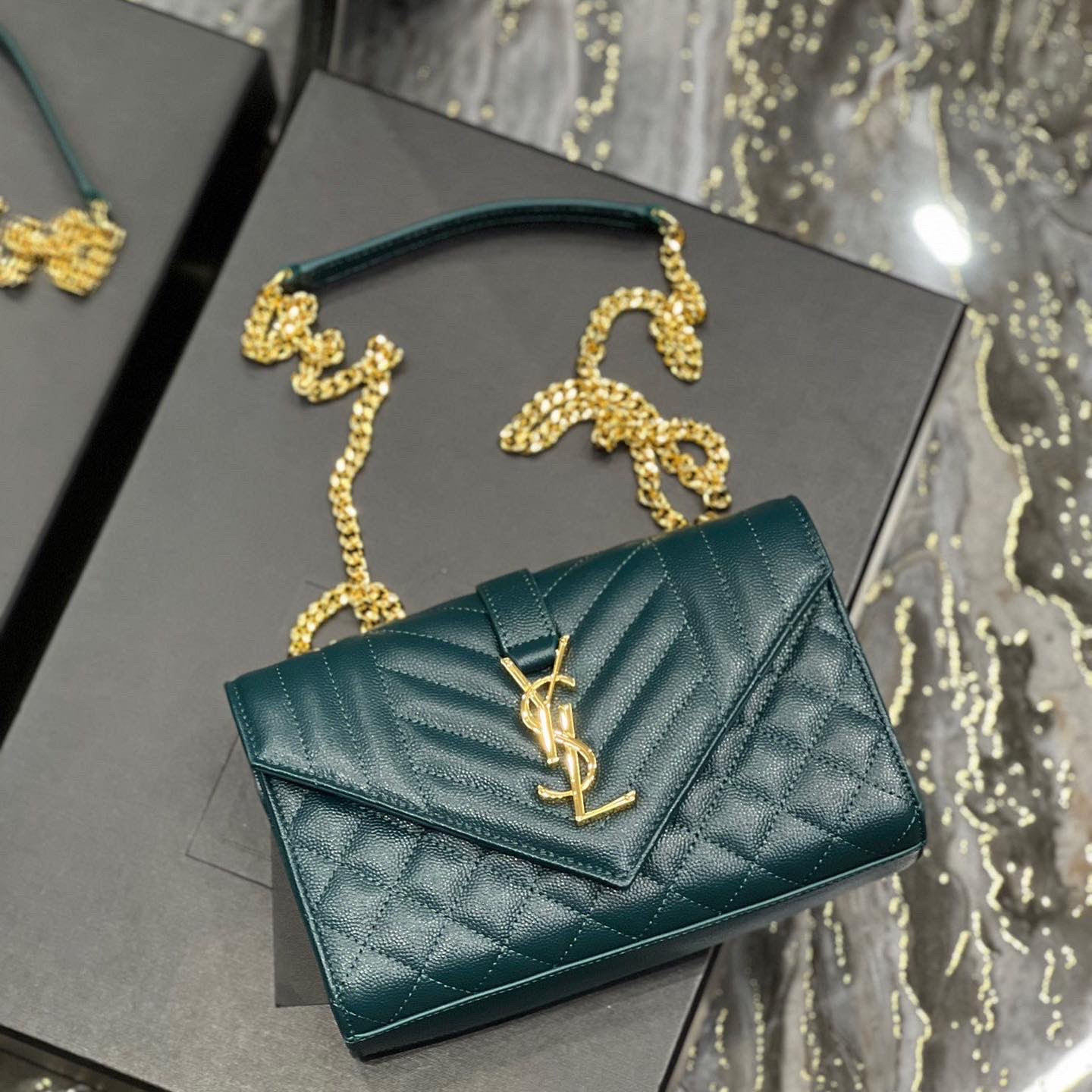 ENVELOPE SMALL BAG IN MIX MATELASSÉ GRAIN DE POUDRE EMBOSSED LEATHER 21CM